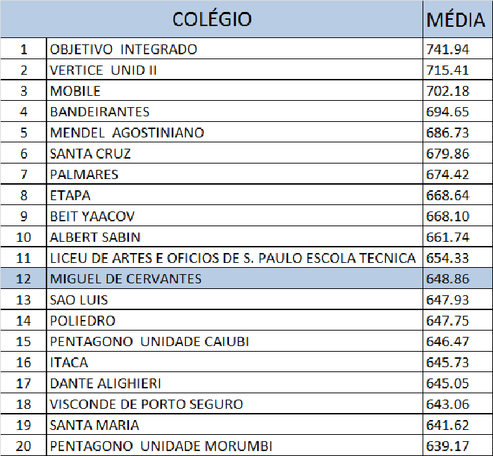 É com satisfação que a Direção do Colégio Miguel de Cervantes parabeniza o corpo docente, equipe pedagógica e queridos alunos pelo excelente resultado no ENEM 2013.