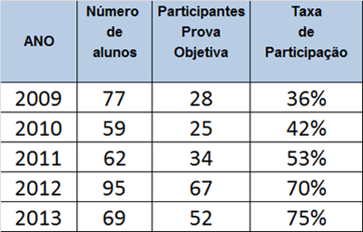 Tabela 2 – Taxa de participação dos alunos e alunas do 3º ano do Ensino Médio de 2009 – 2013