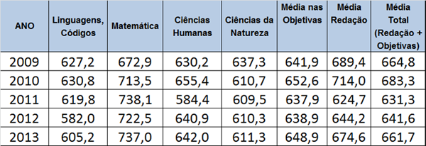 ENEM – Exame Nacional do Ensino Médio 2009 – 2013