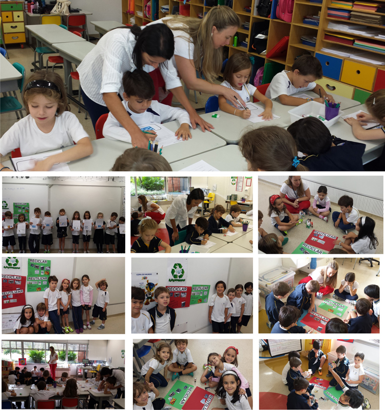 Para os alunos da Educação Infantil e do 1º ano, a semana da campanha “Seja sustentável você também: Reciclagem” só reforça as atitudes que eles já possuem em sala de aula de reutilizar o que for possível e de reciclar sempre.
