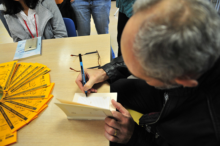 O escritor João Anzanello Carrascoza esteve na 34ª Feira do Livro do Colégio Miguel de Cervantes para um bate-papo com os alunos do 9º ano sobre seu livro Diário das coincidências.