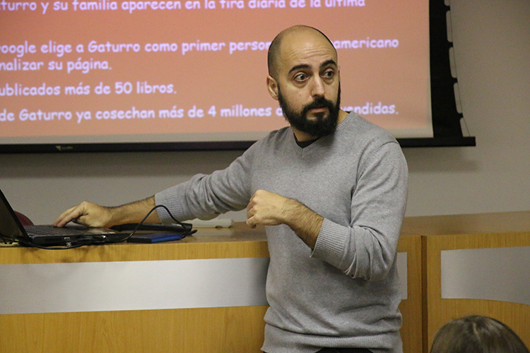 O criador de Gaturro respondeu aos alunos sobre os prêmios que recebeu, mas enfatizou que saber que todos os dias jovens latino-americanos leem o Gaturro é para ele o maior dos prêmios.