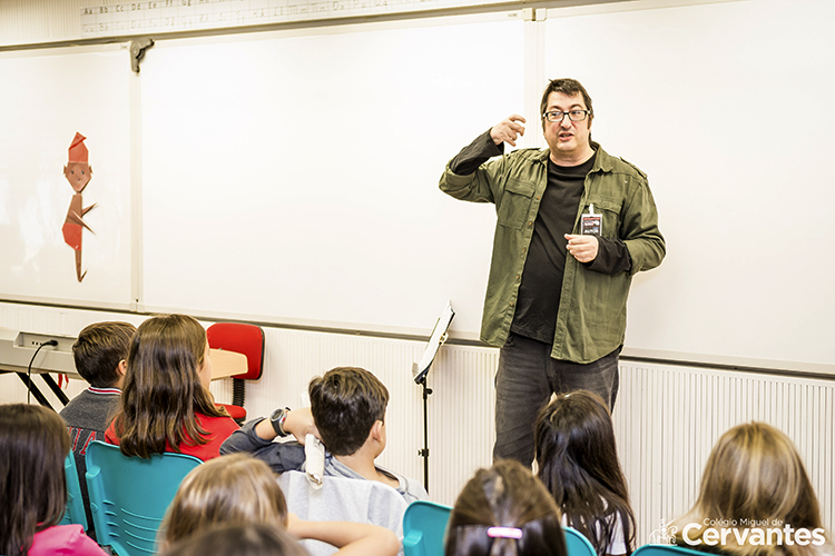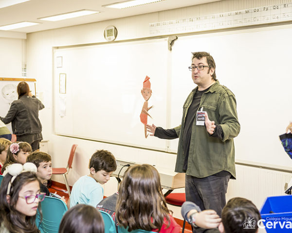 No dia 19 de maio, os alunos do 4º ano do Ensino Fundamental receberam na Feira do Livro do Colégio Miguel de Cervantes o autor Alexandre de Castro Gomes e a ilustradora Cris Alhadeff para um bate-papo sobre o livro Quem matou o Saci?