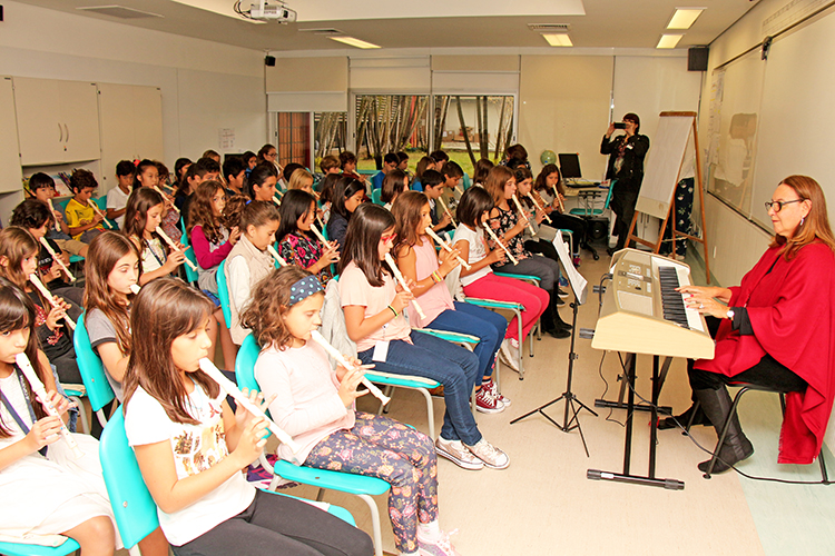 Para recepcioná-los, os alunos apresentaram a música Saci Perereira, baseada no livro, de composição da professora Ana Valéria Turbiani. Durante o encontro, o autor conversou com os alunos sobre a história de mistério.