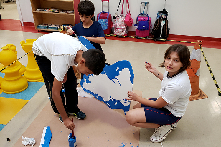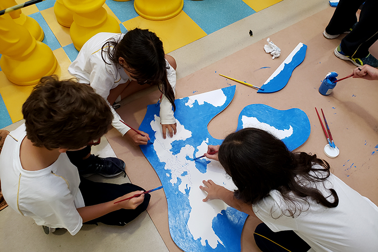 El trabajo plástico consistió en la decoración de un mural, con el mapamundi de fondo, mostrando el carácter itinerante de la vida de Gabriela Mistral y que compone visualmente la historia personal de esta gran autora.