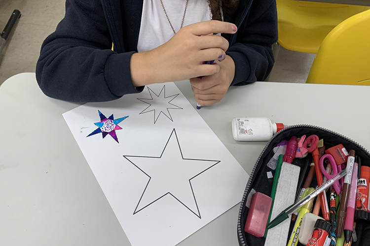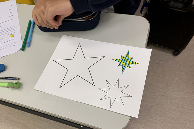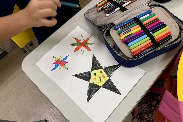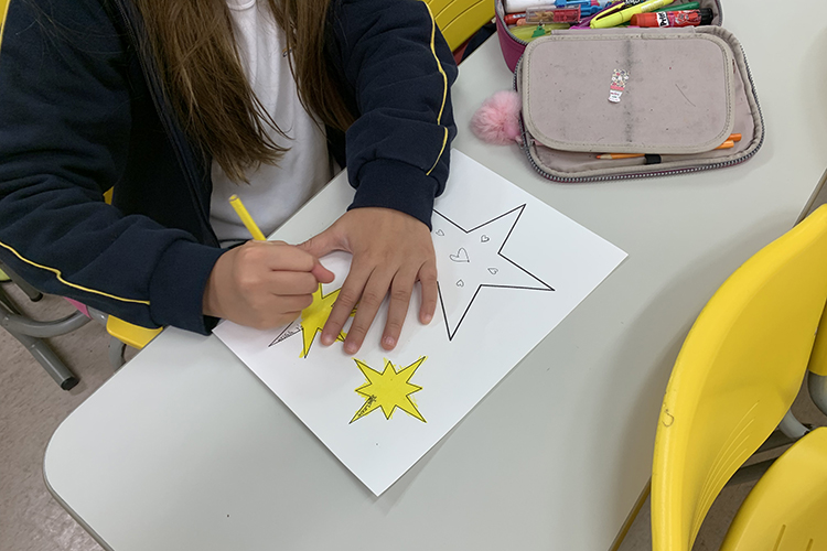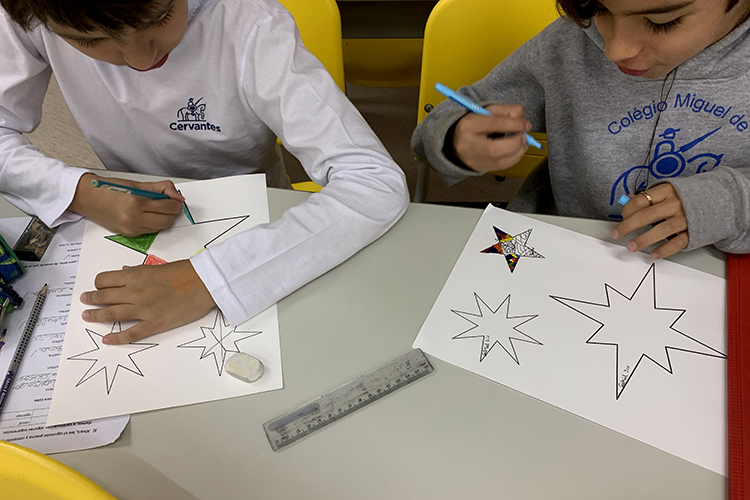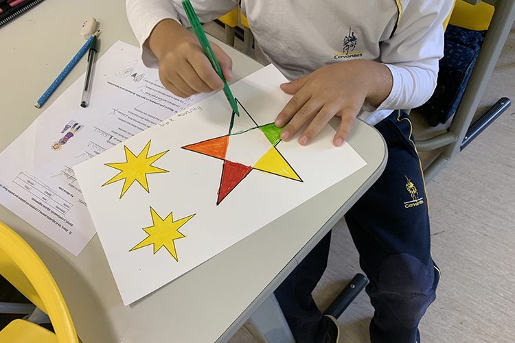 Como resultado plástico, hemos representado la poesía utilizando estrellas confeccionadas por ellos y las estrofas escritas.