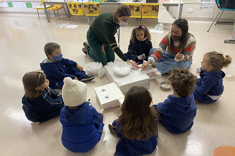 A partir de esta narración, los alumnos de Infantil 3 experimentaron y representaron tal trama, disfrutando del escenario diseñado con amor por la propia autora del libro. A partir de esta propuesta, los niños utilizaron diferentes materiales, creando composiciones estéticas y discursos autorales para volver a contar esta historia.