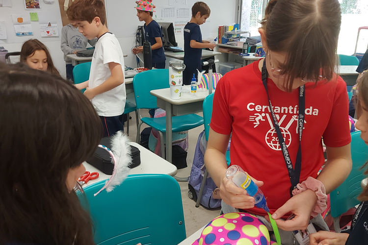 Los alumnos también ampliaron su vocabulario relacionado con el Carnaval en español e inglés, comparando la fiesta brasileña con celebraciones en países hispanohablantes. Crearon carteles promocionales para el desfile de la escuela de samba y participaron en un taller de música,