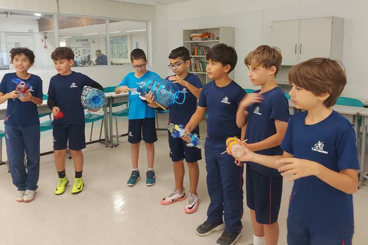 Os alunos também ampliaram seu vocabulário relacionado ao Carnaval em espanhol e inglês, comparando a festa brasileira com celebrações em países hispânicos. Criaram cartazes promocionais para o desfile da escola de samba e participaram de uma oficina de música, onde aprenderam a tocar instrumentos típicos do samba, como pandeiro, tamborim e agogô.