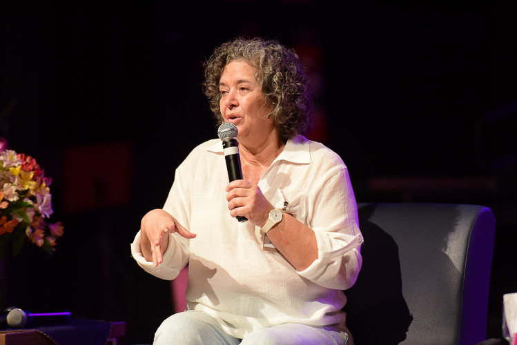 Durante a conversa, a autora compartilhou seus livros favoritos, falou sobre suas inspirações e mencionou escritores que marcaram sua trajetória, como Guimarães Rosa. Também ofereceu conselhos valiosos para quem deseja seguir o caminho da escrita, abordando o processo criativo e os desafios do mercado editorial. Entre outros temas, a autora também trouxe uma reflexão importante sobre os efeitos da tecnologia na leitura e na escrita. Lucia destacou a necessidade de buscar equilíbrio entre os estímulos e as vantagens oriundos das inovações digitais e os possíveis prejuízos que o afastamento da experiência analógica pode trazer, destacado os hábitos de ler e escrever.