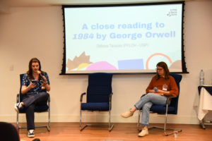 Em 1984, Orwell constrói uma distopia futurista que, embora ambientada num “futuro imaginado”, reflete criticamente o presente de sua época. “É como se ele escrevesse sobre o presente, projetando-o quarenta anos à frente”, explicou a professora. “E ainda hoje, em 2025, seguimos com a sensação de que tudo aquilo está por vir — o que torna a obra ainda mais impactante e relevante.”