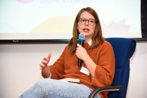 Debora também destacou o contexto histórico que permeia a obra de Orwell: a Revolução Russa, a Segunda Guerra Mundial, os regimes totalitários e as ditaduras do século XX. Segundo ela, o mundo em que Orwell cresceu era marcado por guerras, crises e ruínas.