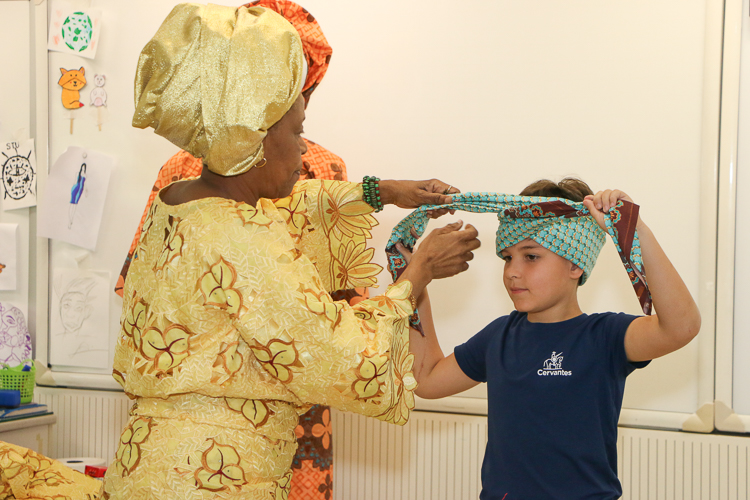 Penha Crispim compartió con los alumnos la diversidad de significados que los turbantes poseen en todo el mundo. Aunque están fuertemente asociados a las culturas africanas, los turbantes también se utilizan en distintas tradiciones religiosas y culturales, como en el hinduismo, el islam y en comunidades del Medio Oriente. Sus diferentes formas de amarre varían según la región, la intención y el contexto, y pueden representar estatus social, espiritualidad, belleza o resistencia.