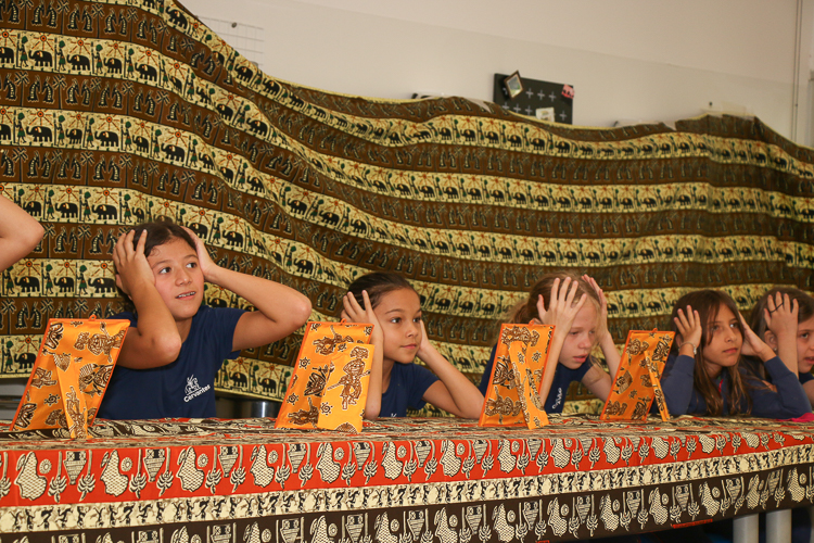 El taller dialogó directamente con el libro La niña que quería girar como una baiana, escrito por Tiago Freitas e ilustrado por Orádia Porciúncula. La obra presenta elementos de la cultura afrobrasileña de forma lúdica y poética; logra despertar en los estudiantes el interés por temas como la ancestralidad, la identidad y el sentido de pertenencia. A partir de esta lectura, los alumnos fueron invitados a explorar la riqueza simbólica de los turbantes y comprendieron su papel como expresión estética, espiritual y política.