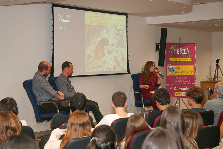 El 15 de mayo, como parte de la programación de la Feria del Libro 2025, los alumnos de 2.º curso del Programa del Diploma y de las clases A, B y C de3.º curso de Enseñanza Media participaron en la mesa redonda “Traduttore, traditore: laberintos de la traducción”, que tuvo lugar en el auditorio del Colegio Miguel de Cervantes.