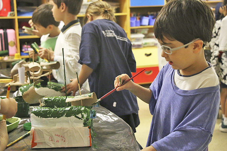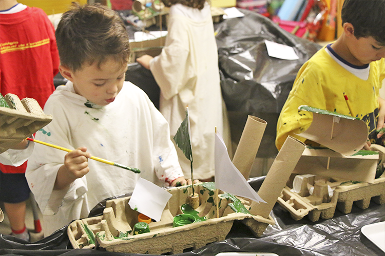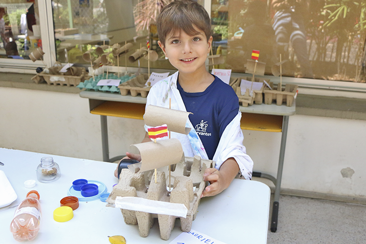 Estudiamos rutas y datos significativos del buque escuela, su navegación y actividades que se llevan a cabo dentro del mismo. Dibujamos el barco diferenciando el nombre de sus cuatro mástiles. Mediante técnicas de papiroflexia, realizamos barcos de papel. Los llevamos al agua y analizamos movimientos del aire y fuerzas y la durabilidad del papel en el agua. Usamos materiales reciclados para crear diferentes tipos de barcos con ellos. Y finalmente los colocamos en la exposición para el día de la Hispanidad.