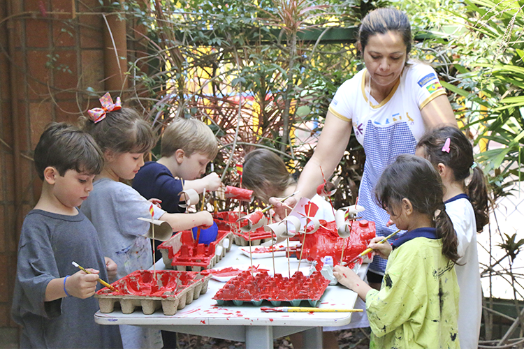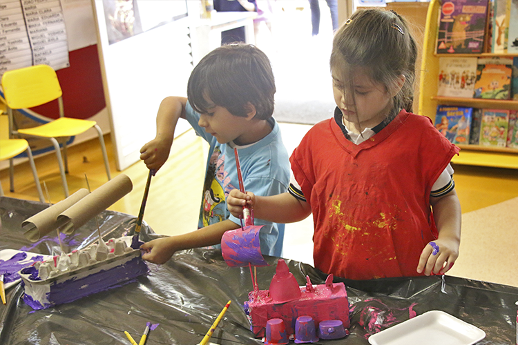 Cuarta sesión: Hicimos un collage de materiales reciclables en los colores que los representan cada continente, terminamos la decoración de barcos con pintura acrílica y recitamos la poesía “Barquito de papel” de Amado Nervo.