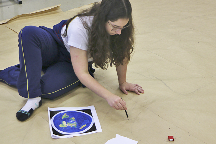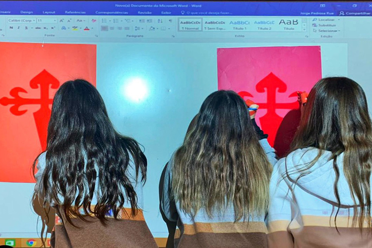 Para decorar el aula se imprimió una portada gigante del libro de Pigafetta, se colocaron cruces de Santiago en las cortinas de la sala, a modo de velas, y se dibujaron en las ventanas las constelaciones que vieron en el hemisferio sur.