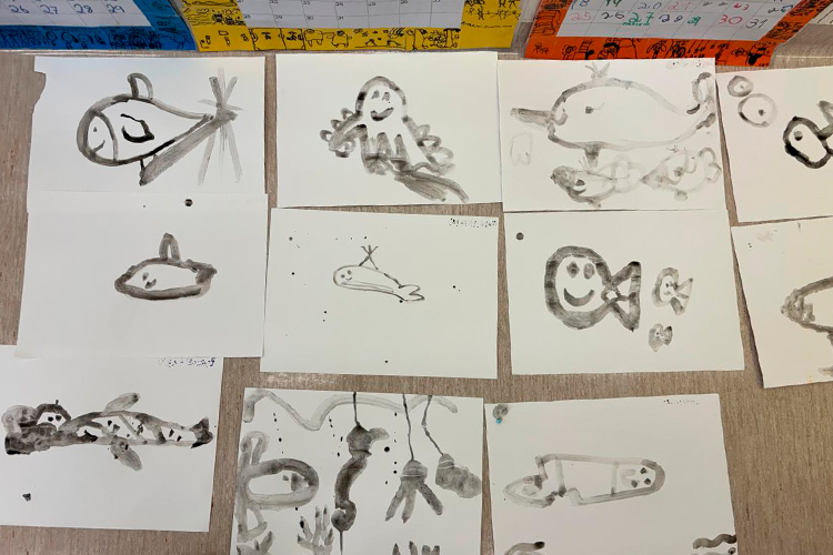 En nuestro taller realizaremos algunas experiencias relacionadas con este animal. Por un lado, pretendemos hacer una exploración de las partes de su cuerpo con un pulpo real, siempre con ayuda de las profesoras. Por otro, con tinta de calamar, comprobaremos los efectos que tiene la tinta para ahuyentar enemigos y apreciaremos por qué este material ha sido utilizado históricamente para escribir y dibujar.