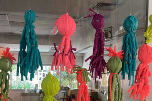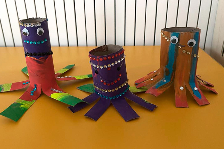 – Pulpo mensajero. Realizado con tubería conduit, permitirá enviar mensajes, entre pares, sobre la sostenibilidad del planeta.