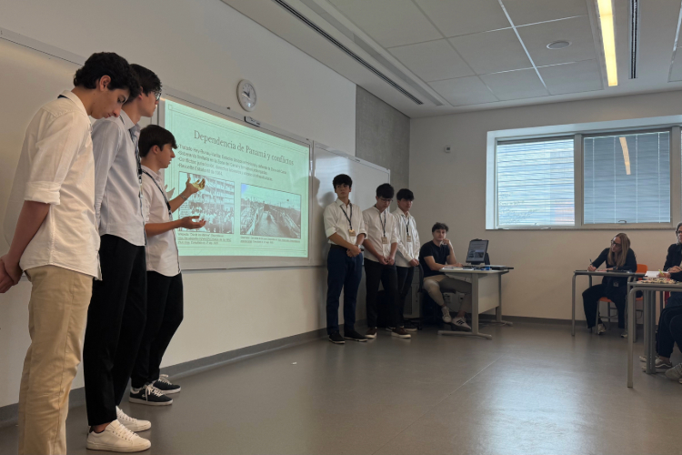Durante los días 9 y 10 de octubre, en la realización del Congreso de la Hispanidad 2025 en el Colegio Miguel de Cervantes, el grupo compuesto por los alumnos André de Moraes Silva Dias, Bernardo Nogueira da Rocha Thomé, Eduardo Luiz Santos Prieto, Lucas Teixeira da Silva Baleizão, Paulo Henrique da Cunha Sales Galgaro y Ricardo de Fiori Villà presentó el tema Canal do Panamá: origens e conflitos. A partir de una presentación en Canva, con imágenes y gráficos que apoyaron la exposición de los integrantes, el objetivo del trabajo fue abordar la importancia política y económica del canal, así como los conflictos e intereses políticos en la región, además de su construcción y funcionamiento.