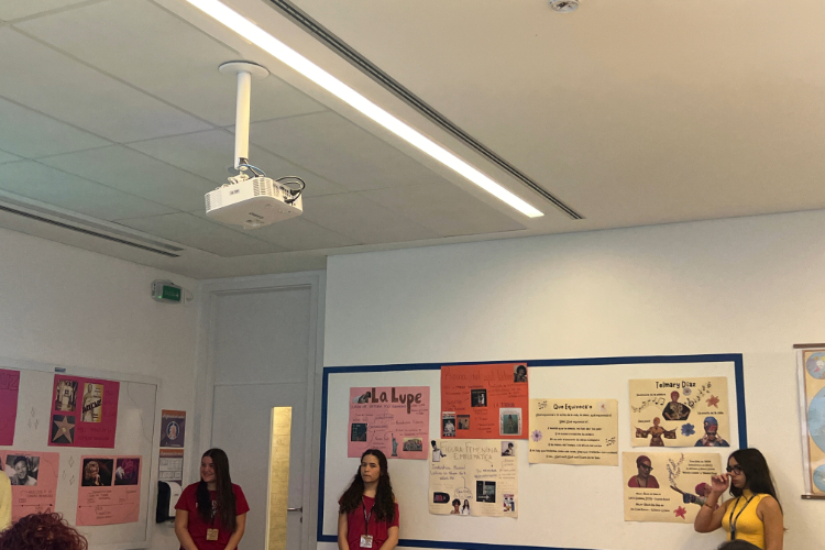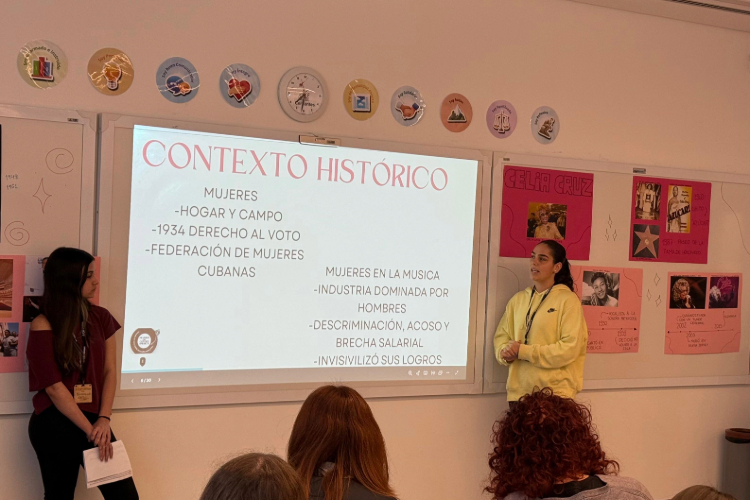 Durante el Congreso de la Hispanidad 2025 en el colegio Miguel De Cervantes, desarrollado entre los dias 9 y 10 de octubre, las alumnas Fernanda Éboli, Giovanna Flores, Isabela Ferreira, Maria Isabel Coelho, Marta Lamas y Nina Drago, con la profesora orientadora Samira Diniz y la orientadora adjunta Joana Martins, presentaron el tema 27 “Mujeres en Centroamérica: el poder de la música”. Por medio de una exposición de Powerpoint que presenta el contexto histórico de Cuba y la historia cronológica de sus cantantes mujeres, las alumnas exhiben la importancia del empoderamiento femenino cubano.