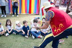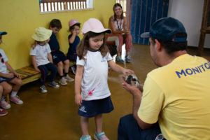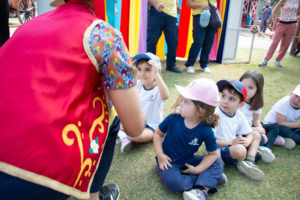 Na estação Folguedos e Festejos, os pequenos tiveram contato com a riqueza das festas brasileiras e participaram de uma vivência do ritmo maracatu, com direito a figurino, instrumentos, coreografia e muita alegria.