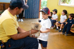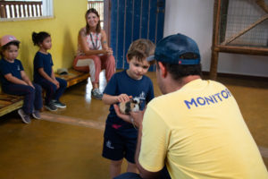 As crianças puderam conhecer de perto diversos animais, aprendendo sobre sua alimentação e seus modos de vida.