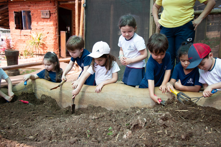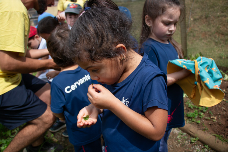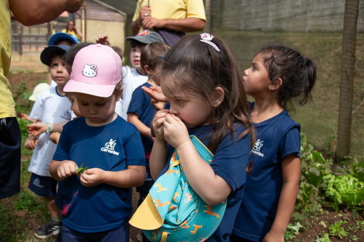 Na área da horta, os alunos tiveram a oportunidade de aprender sobre a história da agricultura, explorando a origem de legumes, verduras e frutas que hoje fazem parte do cotidiano brasileiro. Descobriram, ainda, as verdadeiras raízes dessa prática, marcada pela contribuição de diferentes povos — indígenas, africanos, japoneses, italianos e portugueses — que ajudaram a construir a diversidade agrícola que conhecemos atualmente.