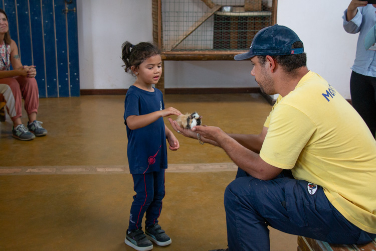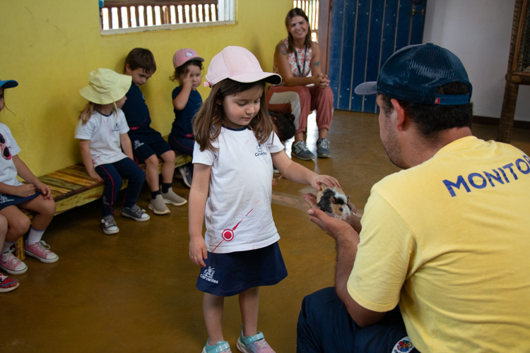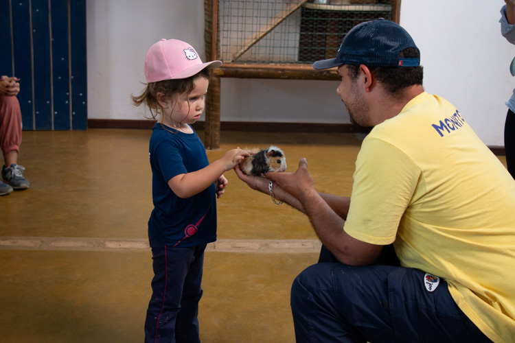 As crianças puderam conhecer de perto diversos animais, aprendendo sobre sua alimentação e seus modos de vida.