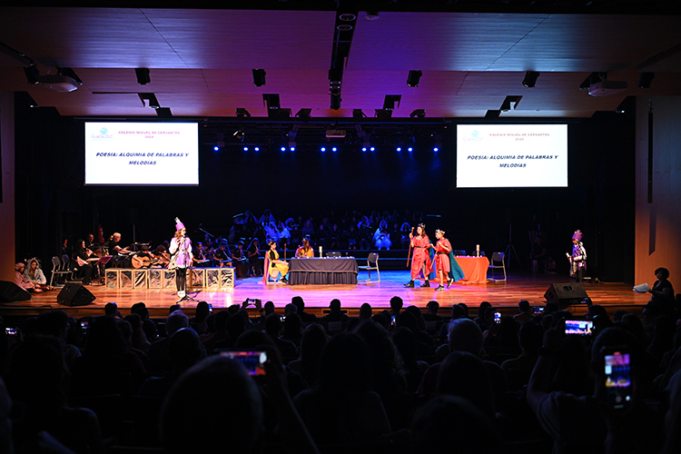 Por su parte, Infantil 4 disfrutó con “Tres pececitos” y una canción a Miguel de Cervantes, mientras que Infantil 3 cantó “El barquito chiquitito” y otras melodías. Para culminar el acto, los alumnos de 6.º y 7.º cursos ofrecieron una poesía que celebró la alquimia de las palabras y melodías.