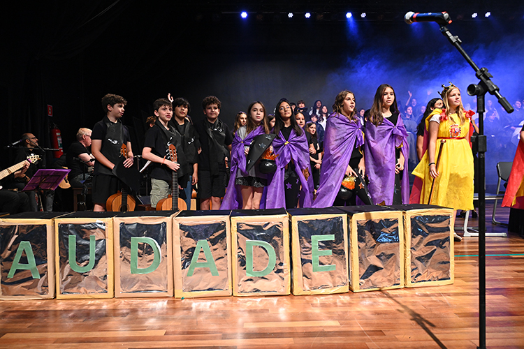 Para el cierre, el evento contó con la presencia de diversas autoridades. El director general, Jorné Berné, dio un discurso abordando la relevancia del tema y del tradicional evento que celebra la unión de las culturas brasileña y española. Para finalizar, los alumnos de 6º y 7º cursos realizaron una presentación musical que discutió la importancia de las lenguas española y portuguesa, además de mencionar personajes como los reyes de España y de Portugal. En la presentación, los estudiantes revelaron la alquimia de las palabras y de las melodías.