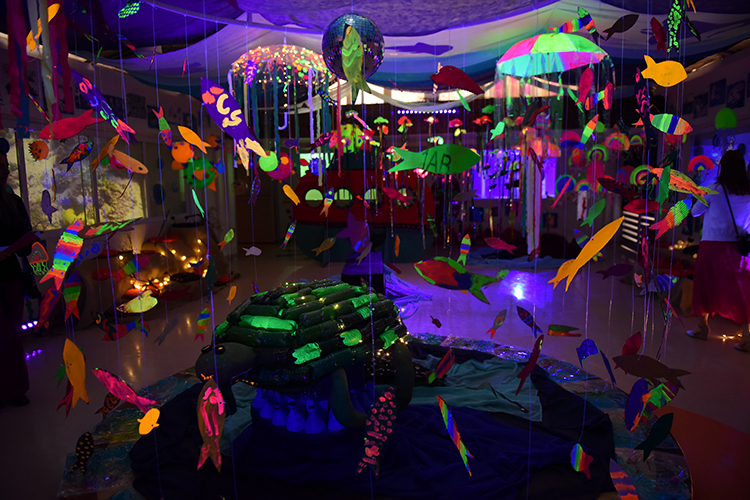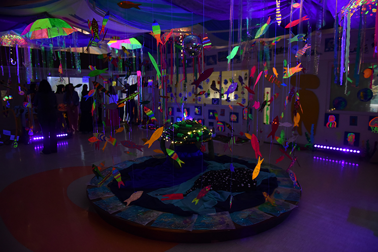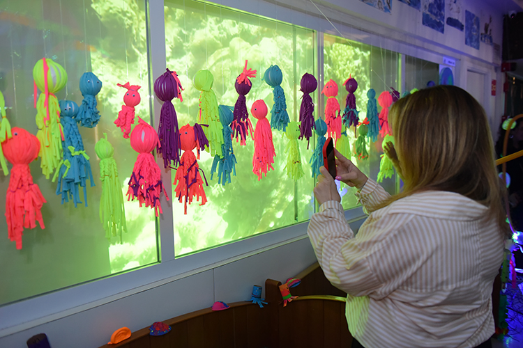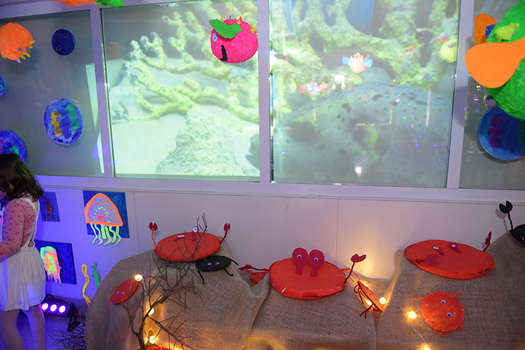 Estos trabajos abarcaban distintos aspectos del idioma y la cultura hispana. Las exposiciones se llevaron a cabo en diversas áreas del colegio, organizadas por niveles educativos. Los más pequeños, de Educación Infantil y 1.er curso, rindieron homenaje a Ángeles Alvariño con el tema “El fondo del mar”, presentando una espectacular exposición con tortugas, medusas, pulpos y estrellas de mar transformando el clúster en un escenario bellísimo que representa el fondo del océano.