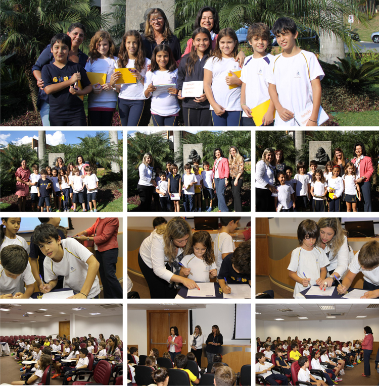 O auditório do Colégio Miguel de Cervantes recebeu os eleitos a representantes de sala do ensino fundamental I para a cerimônia de posse. Participaram da solenidade a diretora pedagógica, Amélia do Rosário M. F. Salazar, as orientadoras do Ensino Fundamental I, Maria Cecília S. Grecco de Marcilio e Tatiana Del Castilho Gola, e as professoras Cláudia Lemos da Silva, Maria Regina de Almeida Padalino, Regina Maria Salvini Raineri, Marlei Sandra de Almeida Ferrara e Rivailda Araujo Santos.