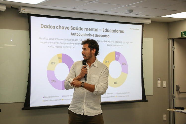 O encontro também apresentou dados inéditos do Great Place to Study®, coletados com a participação de mais de 53 mil estudantes, professores, pais e responsáveis em todo o Brasil, reforçando a urgência de ações concretas de cuidado emocional nas escolas. Segundo João Hoeppner, chanceler da Comissão e fundador do Great Place to Study®, “o que faz uma escola ser grande não é sua infraestrutura ou tecnologia, mas a experiência de cada pessoa que faz parte dela — estudantes, professores e famílias”. Para Marcos Talarico, fundador do Educational Leaders, “reunir gestores e especialistas para colocar a saúde mental no centro da educação é um chamado urgente para formar pessoas e comunidades capazes de florescer”.
