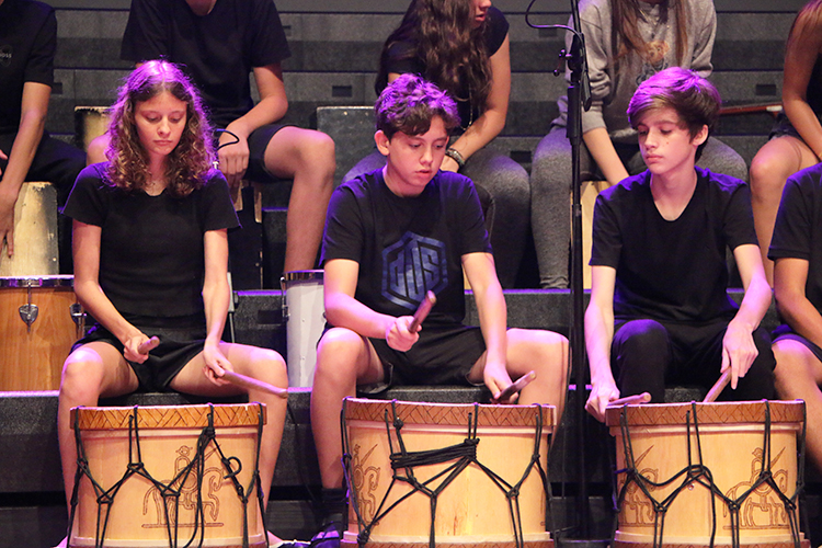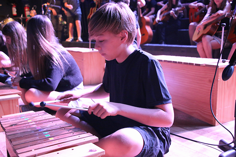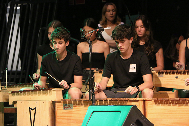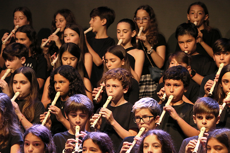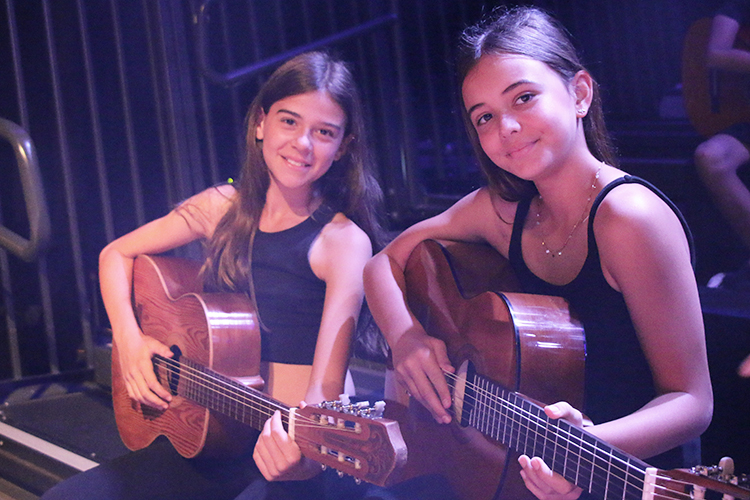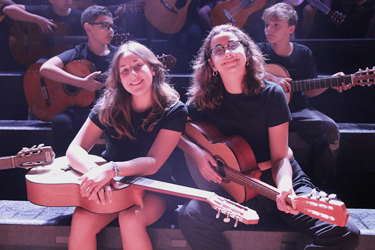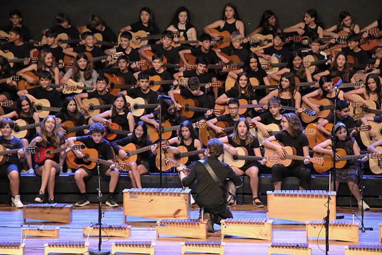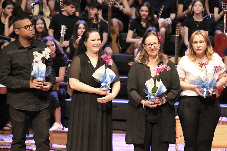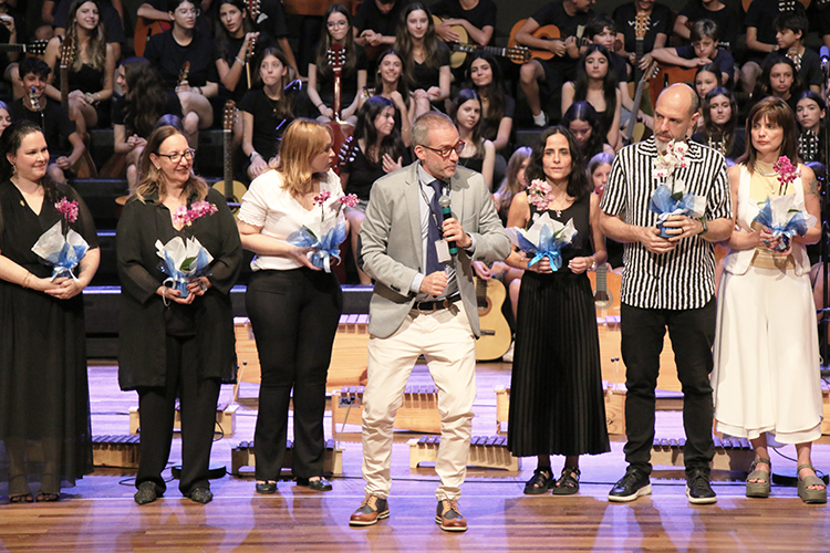 Os alunos dos 3º e 4º anos dos cursos extras de percussão e violão brilharam no palco, acompanhados pelos seus professores, Ricardinho Paraíso e Gabriel Bortolatto, que estiveram ao lado deles, guiando e apoiando em cada nota. A apresentação foi um verdadeiro momento de protagonismo para os alunos, que demonstraram talento e dedicação com a orientação e expertise de seus mestres.