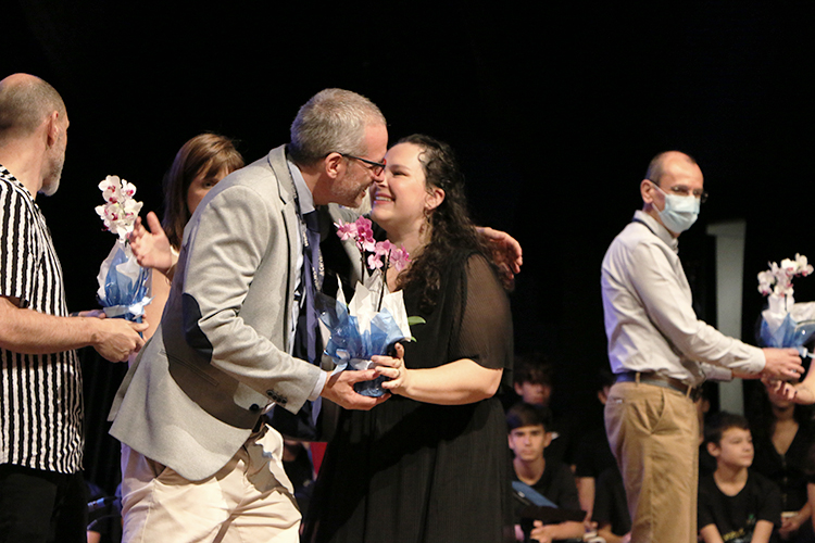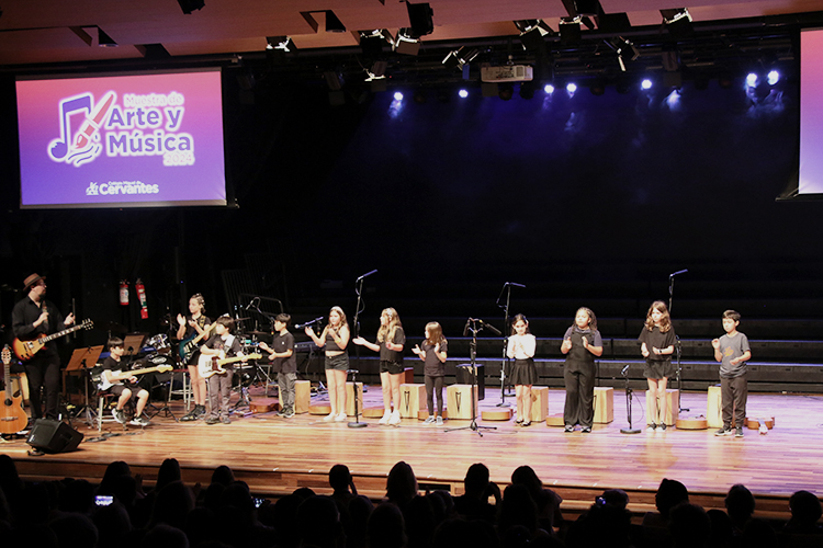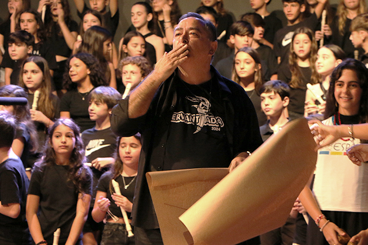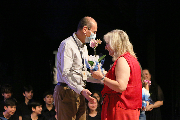 Além das lindas artes e projetos expostos, os alunos encantaram a todos com suas incríveis apresentações no teatro. As turmas procuraram incluir em seus repertórios canções em português, espanhol e inglês, mostrando suas habilidades nos três idiomas. Os pequenos do 2º e 3º anos, por exemplo, se apresentaram ao som de Desde Saturce a Bilbao, I believe I can fly, The Wellerman song e Você fala tupi. Uma das apresentações dos alunos do 2º ano contou com a participação especial do aluno Luiz Felipe Barbosa Ghiotto, do 6ºE, no pandeiro. Ao final, os alunos surpreenderam a todos com uma homenagem especial à professora espanhola Isabel Vicente Vicente, que está deixando o Colégio neste ano.
