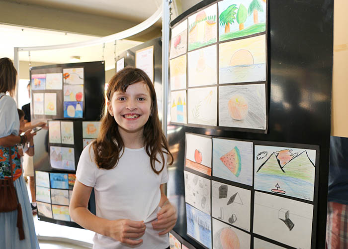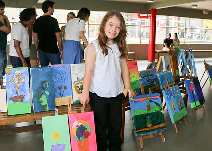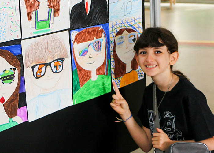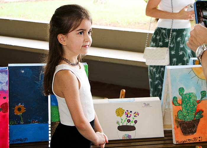 A exposição, situada na Marquise do Cluster 5 e composta por obras dos alunos do Infantil ao Fundamental II, foi organizada pela professora Beatriz Mosca, do curso extra de Oficina de Artes.