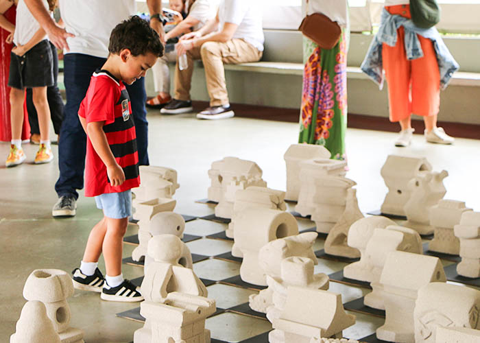 Já os alunos do 1º do Ensino Médio, em suas aulas ministradas pelo professor Fabio Nogueira, trabalharam esculturas de peças de xadrez estilizadas.