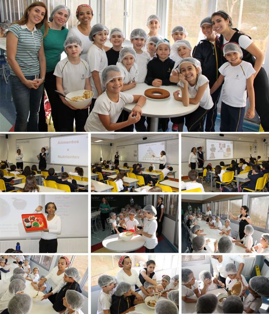 Com os gráficos em mãos, as nutricionistas do Colégio foram a todas as salas do 2º ano para um bate-papo sobre alimentos, nutrientes e pirâmide alimentar. No encontro, as crianças puderam identificar os grupos alimentares que compõem uma alimentação saudável e os compararam com a própria alimentação.