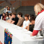 Na proposta do exercício, os alunos receberam cédulas de identidade que, de forma randômica e proporcional à divisão da população mundial, atribuíam a eles uma determinada nacionalidade. Após a classificação, os estudantes que receberam as cédulas de países ricos foram convidados a sentar-se à mesa e, simbolizando a concentração de recursos, foram servidos em abundância.