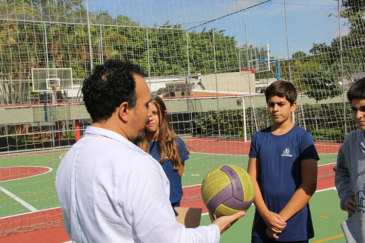 Após o exercício, o professor David deu uma explicação elucidativa aos alunos acerca da força, de sua interação com a gravidade e de sua capacidade de modificar o estado de movimento de um corpo. A exposição colaborou para que os estudantes tirassem mais conclusões a respeito da aplicação do experimento e sua relação com esportes cujas práticas envolvem arremessos, passes, lances etc.
