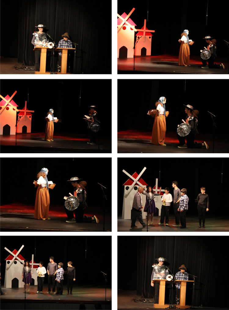 A apresentação, coordenada pelo departamento de Espanhol, dirigida e produzida pelos professores de Língua Espanhola, Manuel Rincón, Patrícia Varela, Unvelina Perdomo e Teresa Yañez Rubiero, foi encenada pelos alunos: Daniel Quesada Davila, do 7º C do Ensino Fundamental, como Miguel de Cervantes; Laura Segura Mayordomo, do 8º A EF, como Dulcinéia de Toboso; Bruno Gadelha Monteiro, do 9ºC EF, como Sancho Panza; e Diego Barros Itaboraí, do 3ºA EM, como D. Quixote.