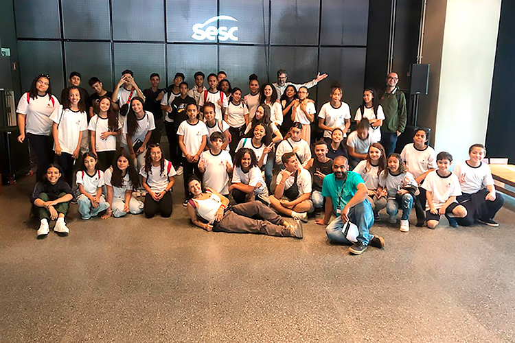 Houve também uma visita ao mirante do SESC Paulista, onde os estudantes puderam ver a Avenida Paulista de um ângulo privilegiado, tirar fotos e fazer filmagens da cidade, além de interagir com outros visitantes no espaço.