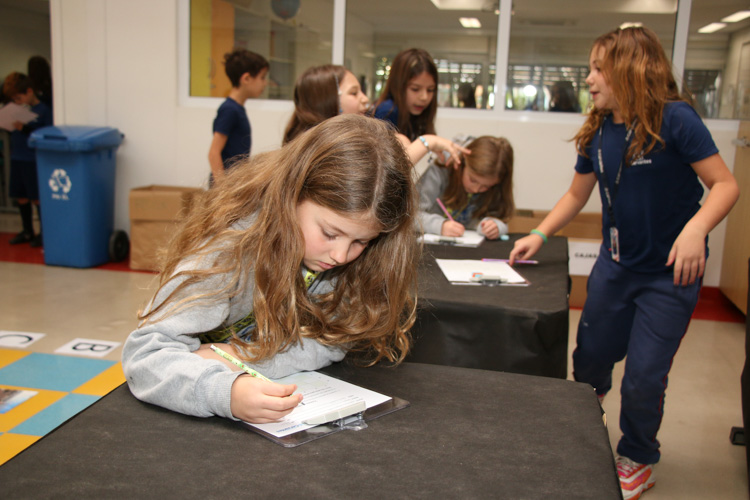 Ao final, além de percorrer o tabuleiro gigante no chão, os alunos reproduziram em folhas impressas a mesma configuração e o caminho percorrido, consolidando o raciocínio e a compreensão espacial.