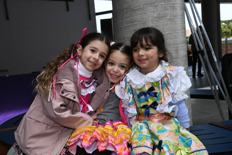 Las actuaciones de los niños deleitaron al público con coreografías que fueron verdaderos viajes por la cultura popular brasileña y latinoamericana. Las clases de Educación Infantil abrieron la fiesta con bailes que valorizaron diferentes manifestaciones culturales: el Carimbó del Infantil 4, con su mezcla de influencias indígenas, africanas y portuguesas; el Boi do Norte de Infantil 3, inspirado en el Boi Bumbá de la región amazónica; el Coco nordestino con el Infantil 5, con zapateados y palmas que contagiaron al público; y el Maculelê con el 1º curso de Fundamental, trayendo la fuerza y el ritmo de las tradiciones afrobrasileñas.