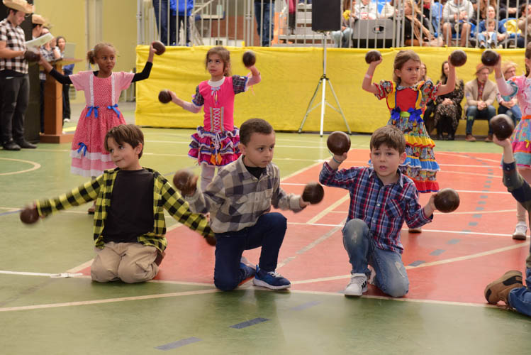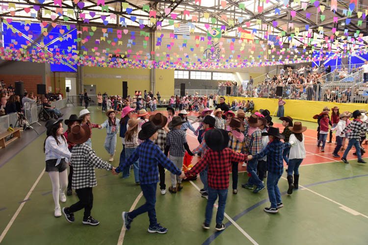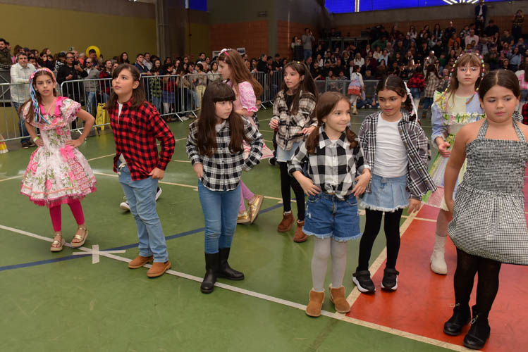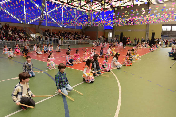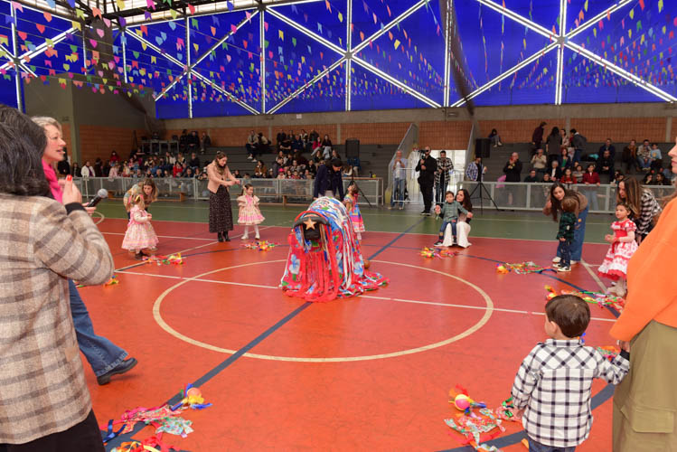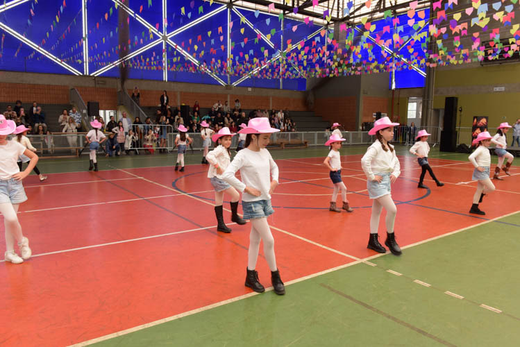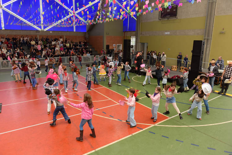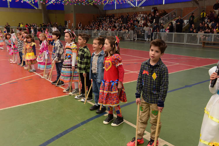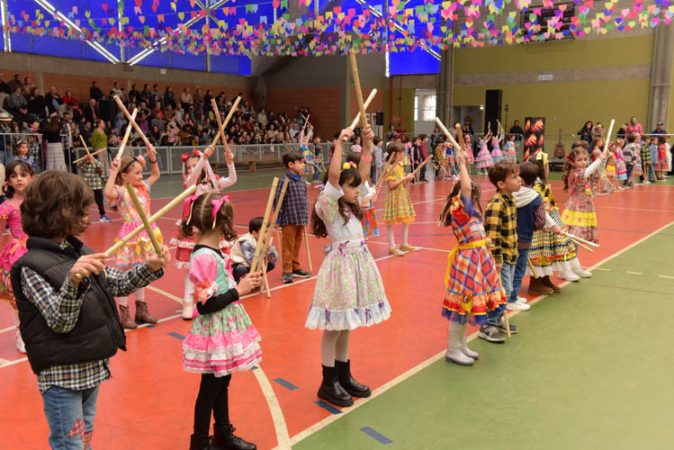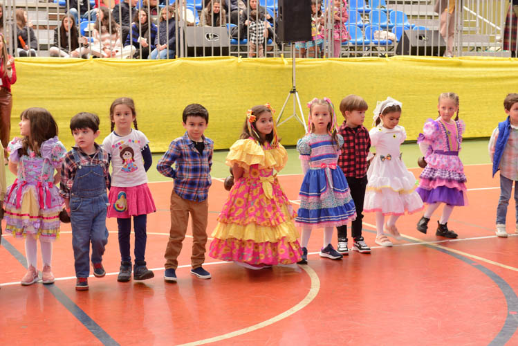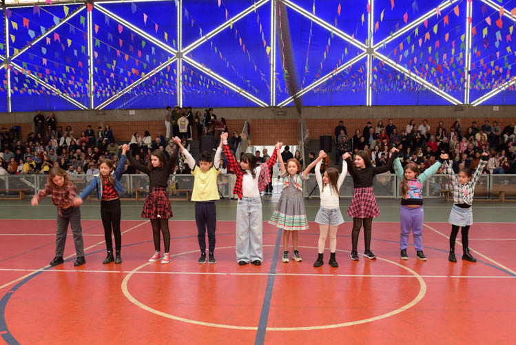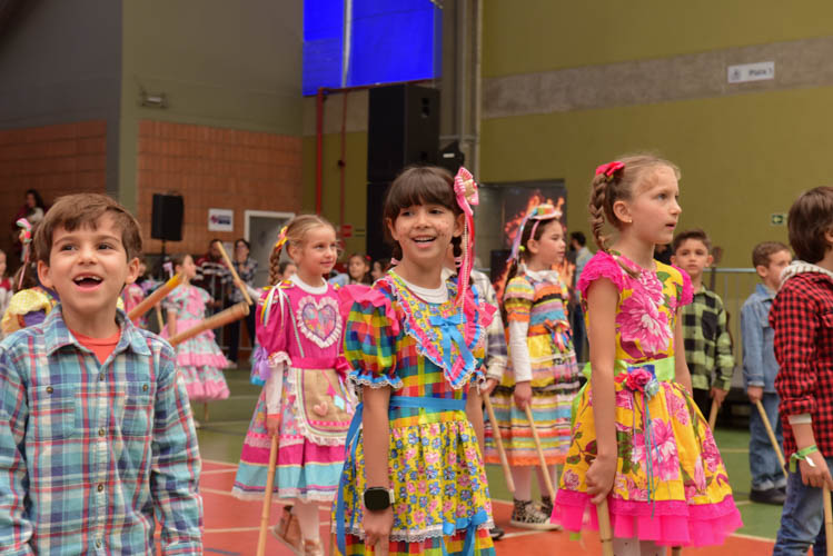Las actuaciones de los niños deleitaron al público con coreografías que fueron verdaderos viajes por la cultura popular brasileña y latinoamericana. Las clases de Educación Infantil abrieron la fiesta con bailes que valorizaron diferentes manifestaciones culturales: el Carimbó del Infantil 4, con su mezcla de influencias indígenas, africanas y portuguesas; el Boi do Norte de Infantil 3, inspirado en el Boi Bumbá de la región amazónica; el Coco nordestino con el Infantil 5, con zapateados y palmas que contagiaron al público; y el Maculelê con el 1º curso de Fundamental, trayendo la fuerza y el ritmo de las tradiciones afrobrasileñas.