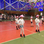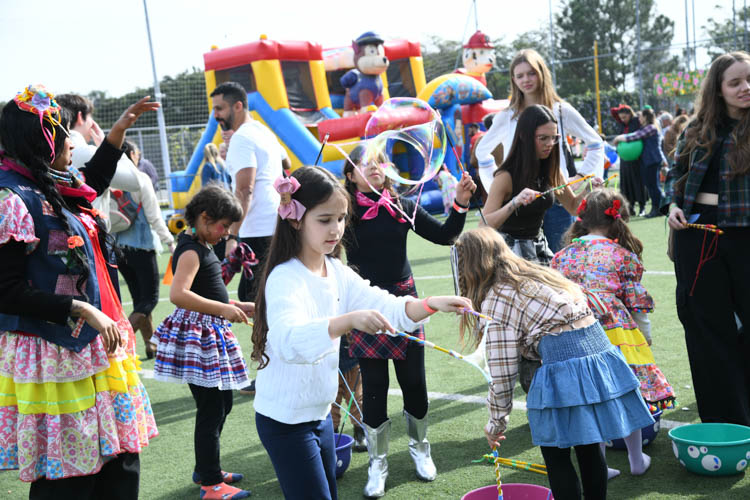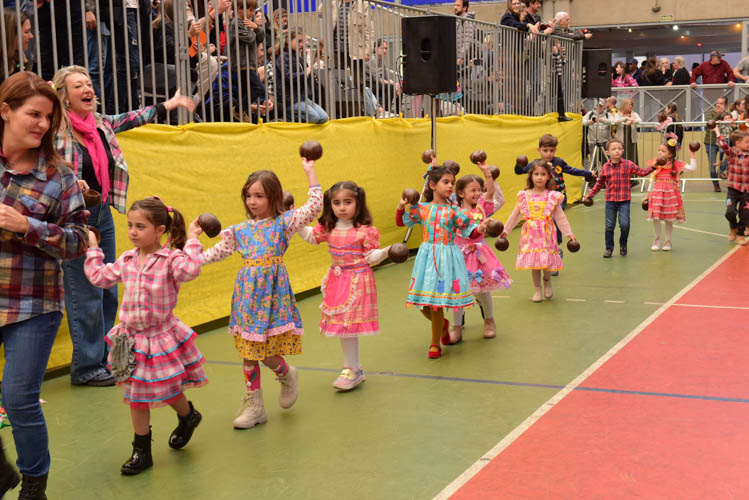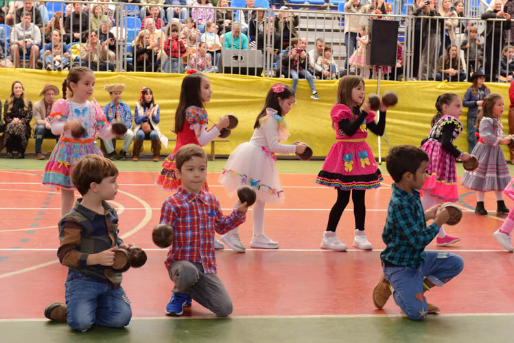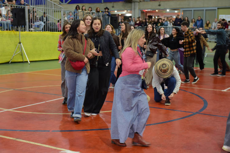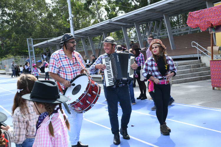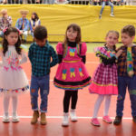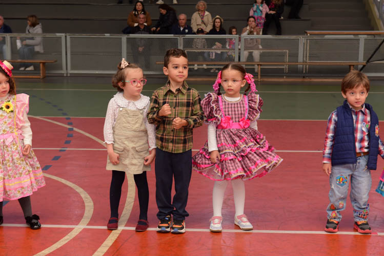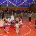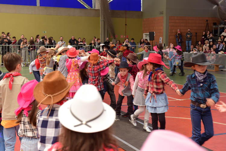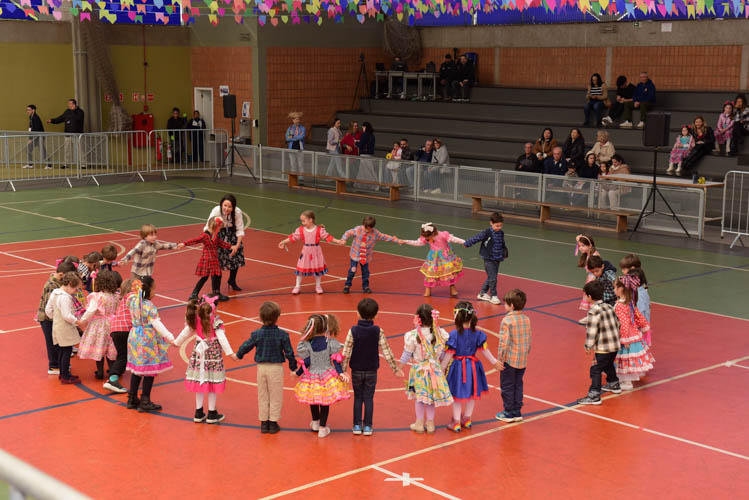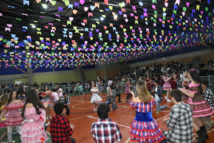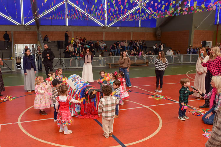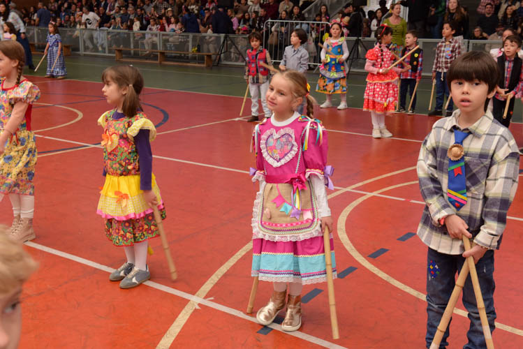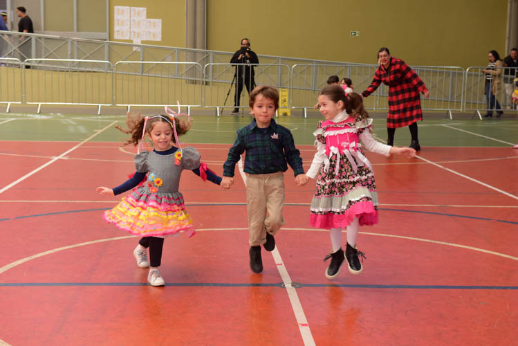 Las actuaciones de los niños deleitaron al público con coreografías que fueron verdaderos viajes por la cultura popular brasileña y latinoamericana. Las clases de Educación Infantil abrieron la fiesta con bailes que valorizaron diferentes manifestaciones culturales: el Carimbó del Infantil 4, con su mezcla de influencias indígenas, africanas y portuguesas; el Boi do Norte de Infantil 3, inspirado en el Boi Bumbá de la región amazónica; el Coco nordestino con el Infantil 5, con zapateados y palmas que contagiaron al público; y el Maculelê con el 1º curso de Fundamental, trayendo la fuerza y el ritmo de las tradiciones afrobrasileñas.