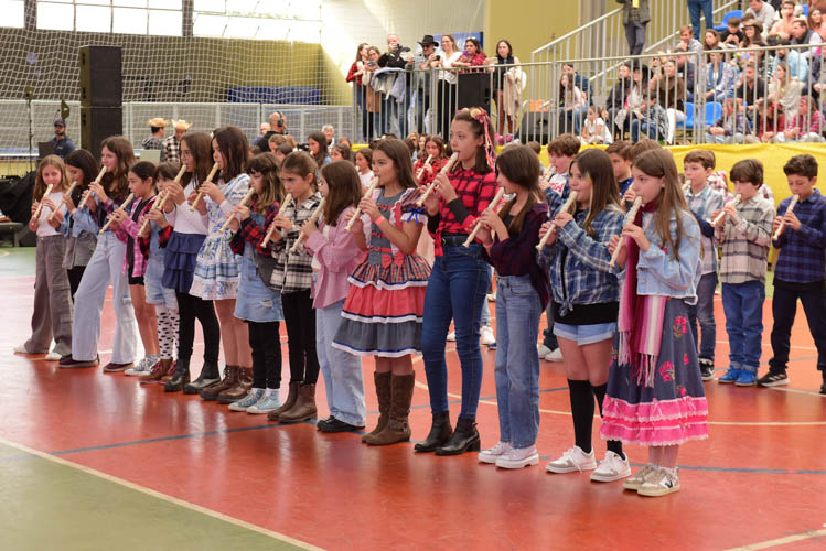 Los alumnos de 2º a 5º cursos de Enseñanza Fundamental también ofrecieron un verdadero espectáculo de talento y expresión. Los de 2º y 3º cursos rindieron homenaje al Medio Oeste con Catira, Siriri y Cururu, además de llevar al escenario la emoción de la Parranda o Cumbia Campesina, conectando al público con los ritmos y bailes de las Fiestas de San Juan. El 4º curso interpretó el Xote con gran ligereza y musicalidad, y el 5º curso emocionó a todos con una preciosa versión instrumental y coreografiada de “Eu só quero um xodó“.