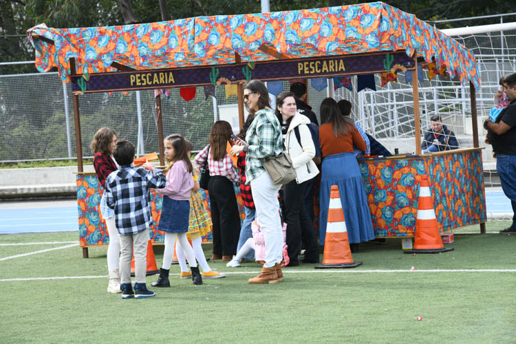 Los juegos típicos también fueron un éxito. Hubo sortija de maíz, pesca, “boca do caipira”, “tomba-latas”, “frango na panela” y muchas otras atracciones para todas las edades. Los alumnos del 3º curso de Enseñanza Media, como es tradición, organizaron actividades especiales como correo elegante, bingo e incluso partidos de Fifa Soccer, garantizando una diversión extra para el público.